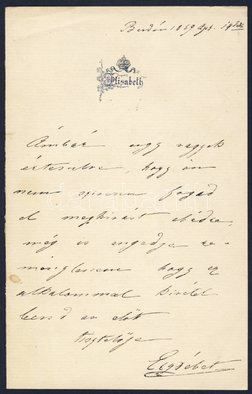 1869 Erzsébet királyné Deák Ferencnek saját kézzel írott ebédmeghívása aláírással / Queen Elisabeth (Sissy) own hand-written and signed invitation letter to Ferenc Deák
