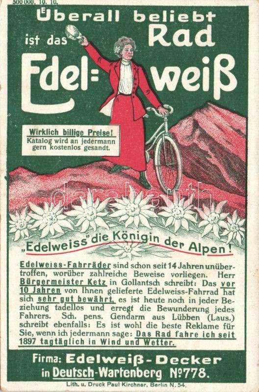 Edelweiß bicycles Litho commercial https://www.darabanth.com/de/8-Gross-Auktion/8.1/Thematik-und-Kunstlerkarten/~2079/EdelweiC39F-bicycles-Litho-commercial~II207559