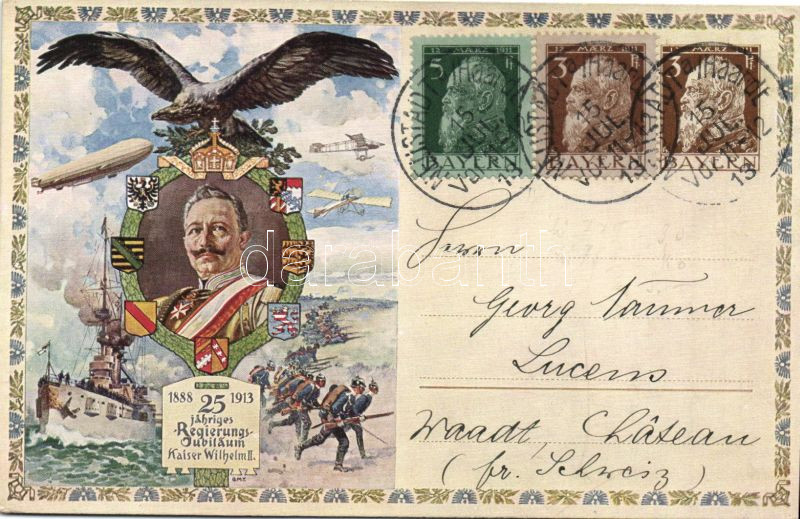 Wilhelm II. anniversary zeppelin, military, plane https://www.darabanth.com/de/8-Gross-Auktion/8.1/Thematik-und-Kunstlerkarten/~2083/Wilhelm-II-anniversary-zeppelin-military-plane~II208054