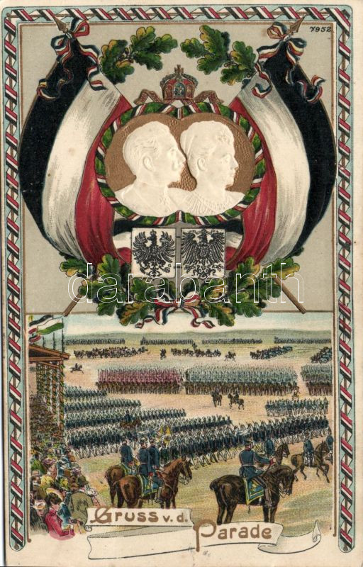 Wilhelm II. military Embossed Litho https://www.darabanth.com/de/8-Gross-Auktion/8.1/Thematik-und-Kunstlerkarten/~2083/Wilhelm-II-military-Embossed-Litho~II198269