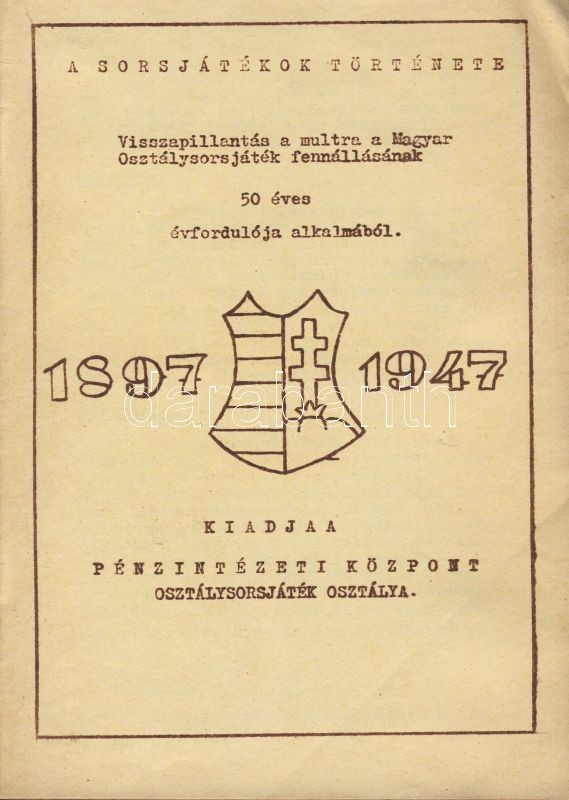 1947 A sorsjátékok története az osztálysorsjáték osztály áttekintő kia... https://www.darabanth.com/de/80-Fernauktion/80.0/Andere-Sammelgebiete/~680/1947-A-sorsjatekok-tortenete-az-osztalysorsjatek-osztaly-attekinto-kiadvanya~II164427