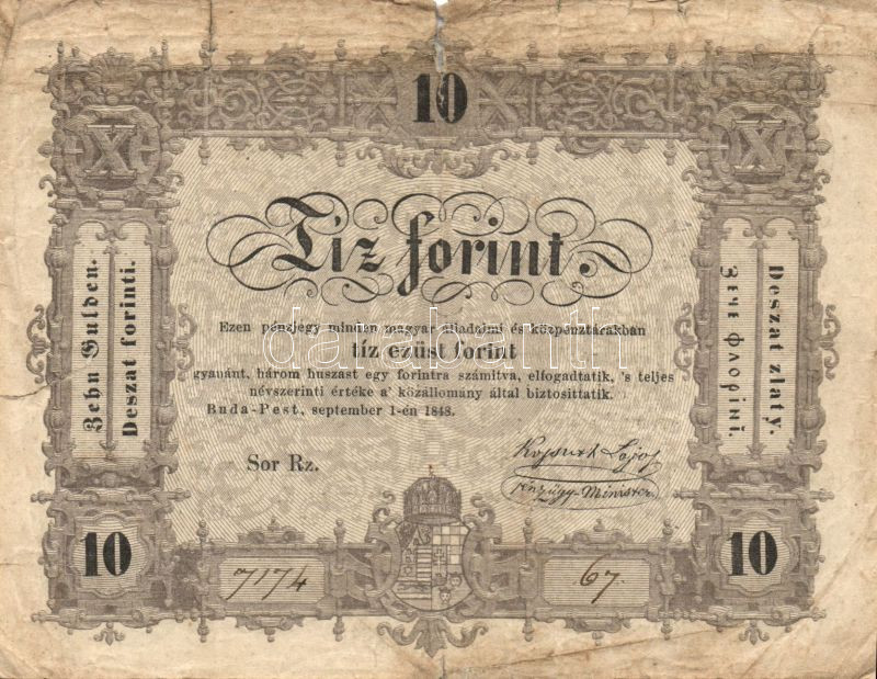 Beschreibung: 1848. 10Ft "Kossuth bankó" (4x) T:IV