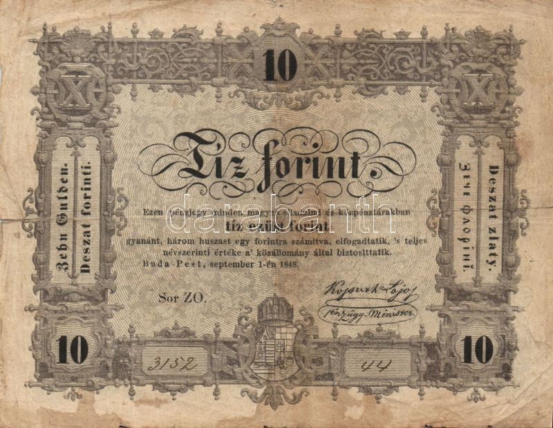 1848. 10Ft "Kossuth bankó" (4x) T:IV https://www.darabanth.com/de/80-Fernauktion/80.0/Numismatik/~700/1848-10Ft-Kossuth-banko-4x-TIV~II165398
