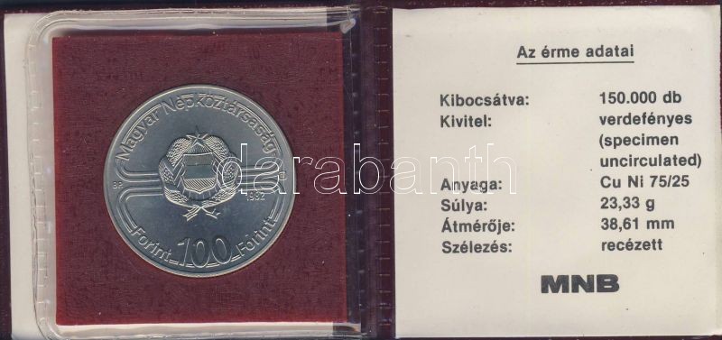 Beschreibung: 1982. 100Ft "Labdarúgó VB" T:BU Eredeti tokban, tanúsítvánnyal!