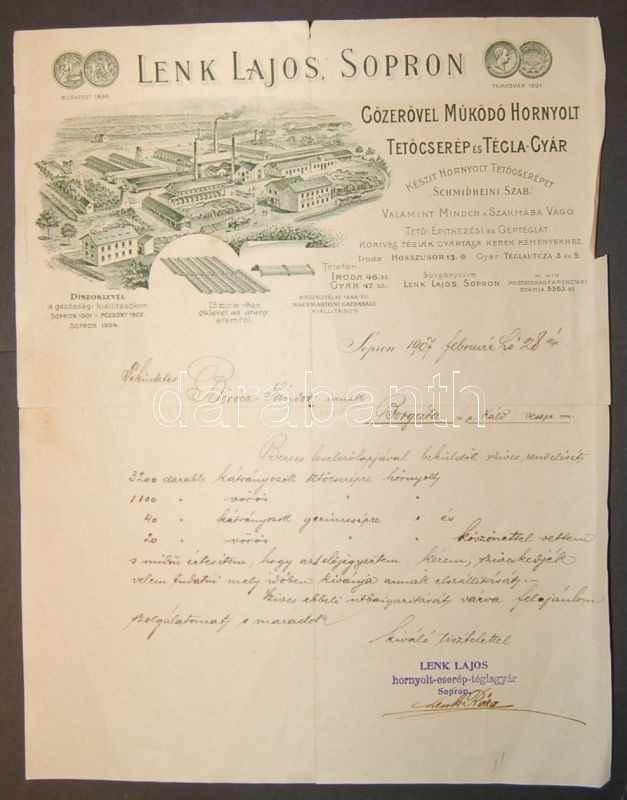 1907 Lenk Lajos soproni téglagyáros díszes kivitelezésű számlája BORGÁ... https://www.darabanth.com/de/82-Fernauktion/82.0/Andere-Sammelgebiete/~230/1907-Lenk-Lajos-soproni-teglagyaros-diszes-kivitelezesu-szamlaja-BORGATA-ra~II173556
