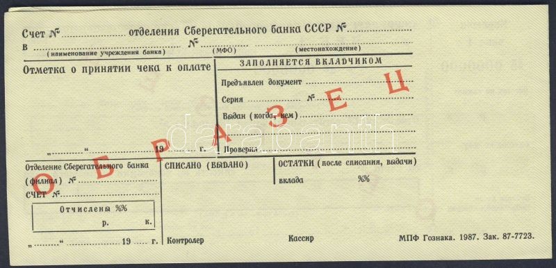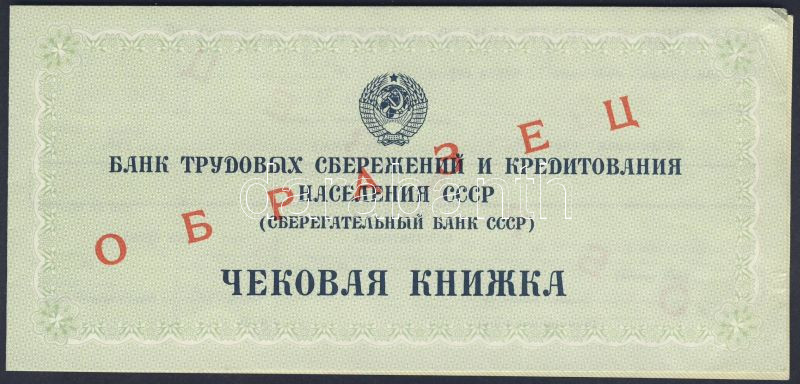 Szovjetunió 1987. Csekkfüzet piros "Minta" fny-sal T:I- https://www.darabanth.com/de/82-Fernauktion/82.0/Numismatik/~244/Szovjetunio-1987-Csekkfuzet-piros-Minta-fny-sal-TI-~II174163