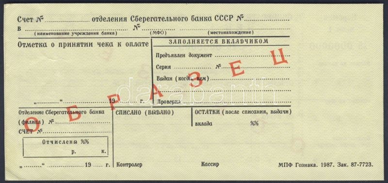 Beschreibung: Szovjetunió 1987. Csekkfüzet piros "Minta" fny-sal T:I/II