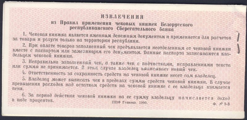 Beschreibung: Szovjetunió/Fehérorosz Sz.Sz.K. 1990. Csekkfüzet piros "Minta" fny-sal T:I