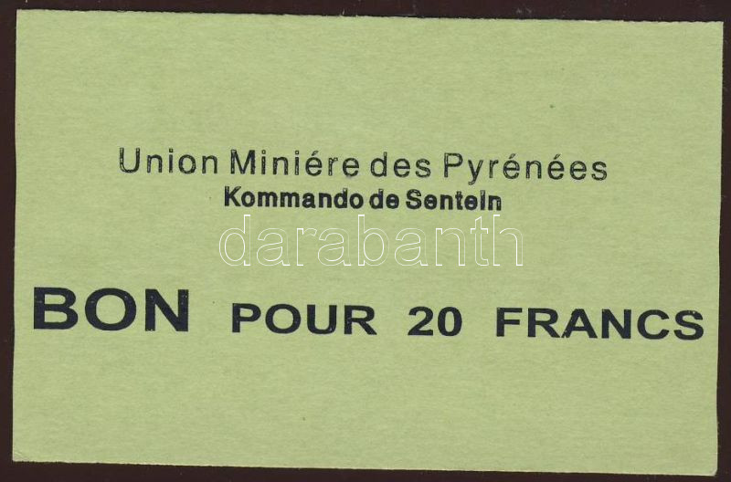 Franciaország 1940-es évek Union Miniere/Kommando de Senteln bón 20Fr-... https://www.darabanth.com/de/82-Fernauktion/82.0/Numismatik/~246/Franciaorszag-1940-es-evek-Union-MiniereKommando-de-Senteln-bon-20Fr-rol-TI~II174166