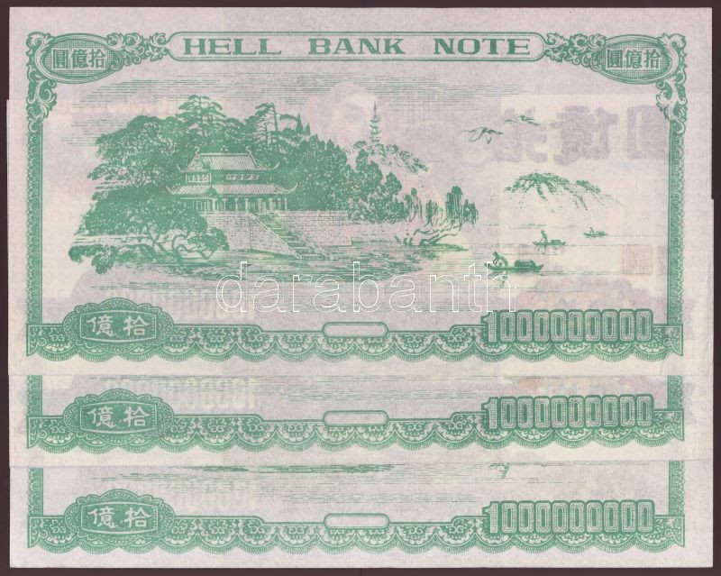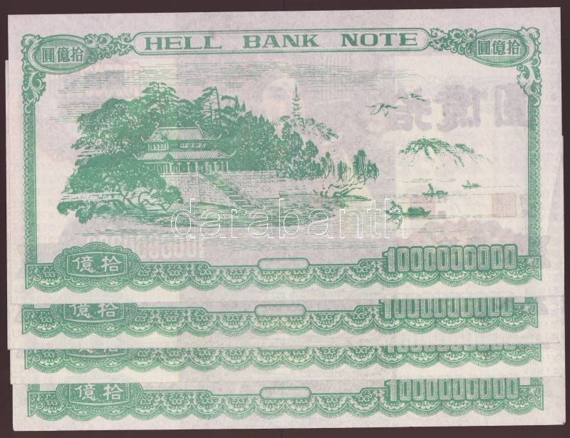 Beschreibung: Kína extrém nagyalakú dekoratív égetési pénz 1000.000.000 névértékben, különleges papíron (7x) T:I