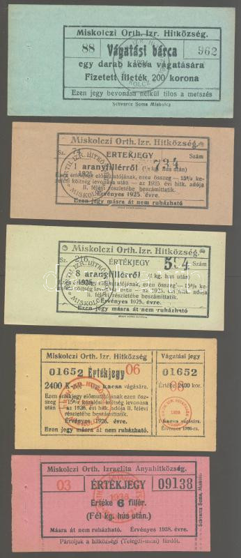Beschreibung: Miskolc 1925-1938. 5db klf zsidó értékjegy, ill. vágási bárca T:I