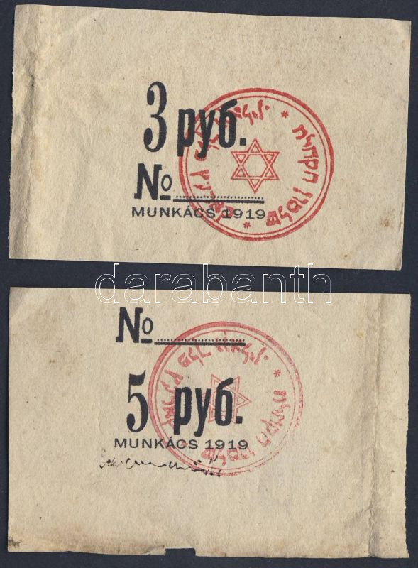 Munkács 1919. 3p, 5p 2klf db zsidó szükségpénz?! (Ismeretlen az irodal... https://www.darabanth.com/de/82-Fernauktion/82.0/Numismatik/~246/Munkacs-1919-3p-5p-2klf-db-zsido-szuksegpenz-Ismeretlen-az-irodalomban-TII~II174064