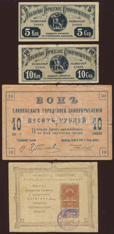 Beschreibung: Orosz polgárháború kis gyűjtemény városi szükségpénzekből és bónokból, összesen 16db, 1918-1920-as évek eleje! R! T:I,II,III,III/IV