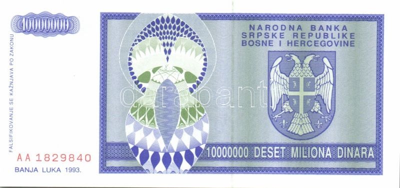 Bosznia Hercegovina/Szerb Köztársaság 1993. 100.000D, 5000.000D, 10.0... https://www.darabanth.com/de/82-Fernauktion/82.0/Numismatik/~247/Bosznia-HercegovinaSzerb-Koztarsasag-1993-100000D-5000000D-10000000D-TI~II173436