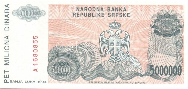Beschreibung: Bosznia Hercegovina/Szerb Köztársaság 1993. 5000D, 50.000D, 100.000D, 5000.000D, 500.000.000D (2. kiadás) T:I