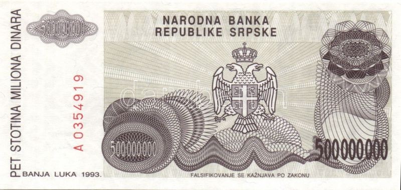 Bosznia Hercegovina/Szerb Köztársaság 1993. 5000D, 50.000D, 100.000D, ... https://www.darabanth.com/de/82-Fernauktion/82.0/Numismatik/~247/Bosznia-HercegovinaSzerb-Koztarsasag-1993-5000D-50000D-100000D-5000000D-500000000D-2~II173441