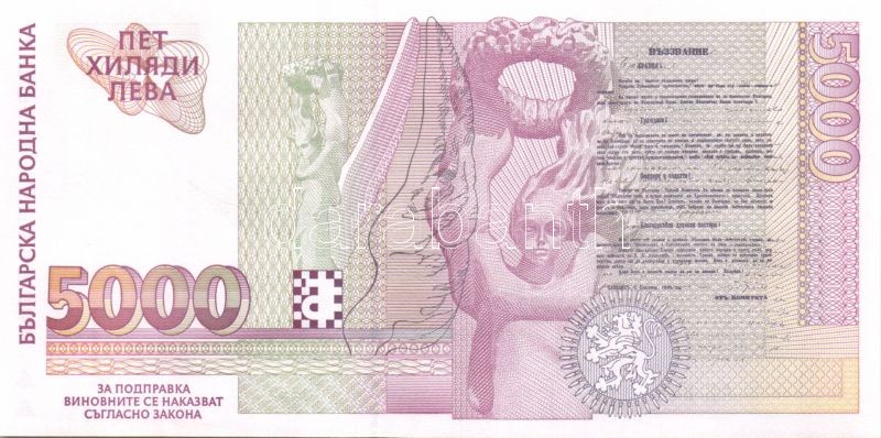Bulgária 1991-92. 20L, 50L, 100L, 200L + 1994-96. 2000L, 5000L T:I https://www.darabanth.com/de/82-Fernauktion/82.0/Numismatik/~247/Bulgaria-1991-92-20L-50L-100L-200L-plus-1994-96-2000L-5000L-TI~II173558