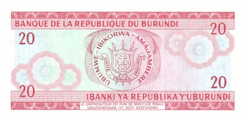 Beschreibung: Burundi 1970.4.01. 10Fr + 1977.7.01. 20Fr + 1989.10.01. 20Fr T:I