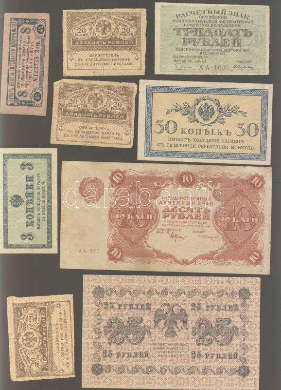 Cári Oroszország + Szocialista Szövetségi Szovjet Köztársaság 1909-192... https://www.darabanth.com/de/82-Fernauktion/82.0/Numismatik/~247/Cari-Oroszorszag-plus-Szocialista-Szovetsegi-Szovjet-Koztarsasag-1909-1922-12db-7klf-bankjegy~II173743
