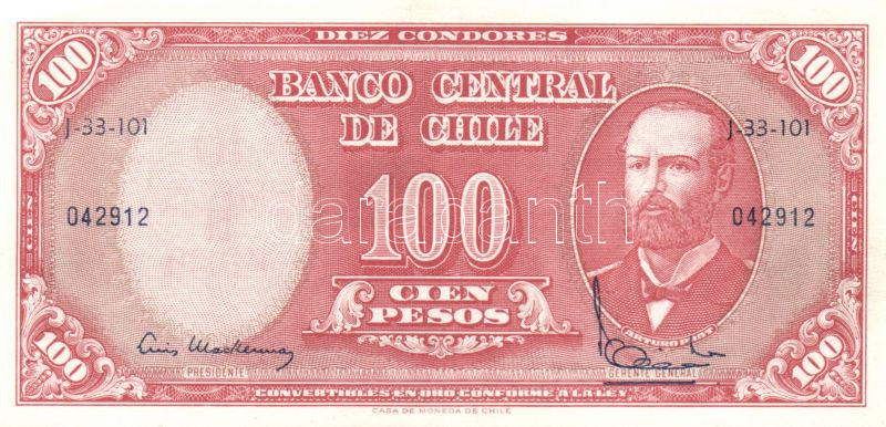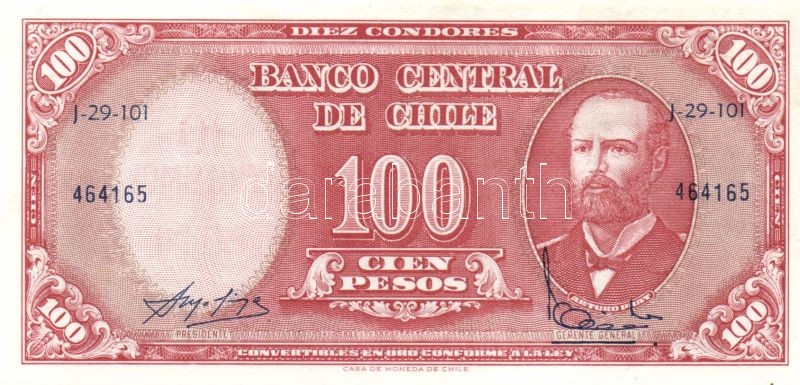 Chile 1958-59. 100P (2x) klf aláírásokkal T:I https://www.darabanth.com/de/82-Fernauktion/82.0/Numismatik/~247/Chile-1958-59-100P-2x-klf-alairasokkal-TI~II173285