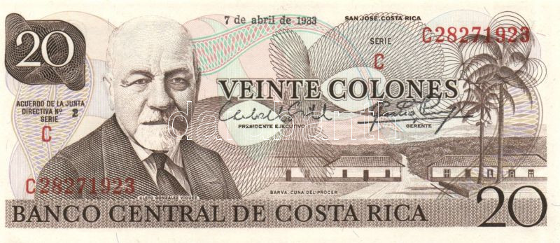 Costa Rica 1983.4.7. 20C T:I https://www.darabanth.com/de/82-Fernauktion/82.0/Numismatik/~247/Costa-Rica-198347-20C-TI~II173386