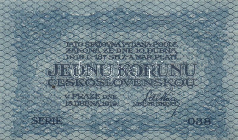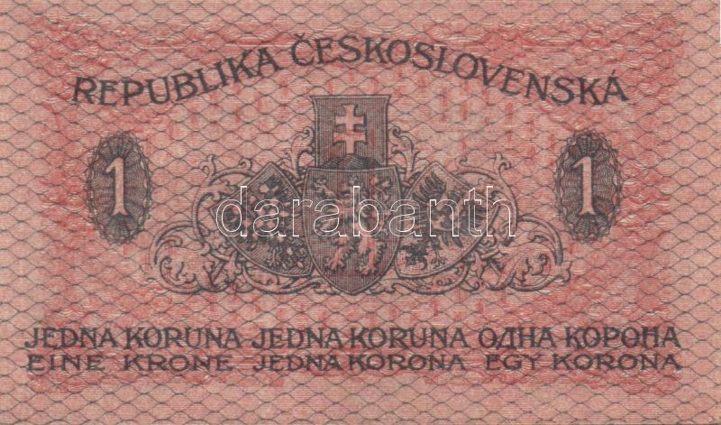 Csehszlovákia 1919. 1K (2x) 2klf színnyomat T:I https://www.darabanth.com/de/82-Fernauktion/82.0/Numismatik/~247/Csehszlovakia-1919-1K-2x-2klf-szinnyomat-TI~II173661