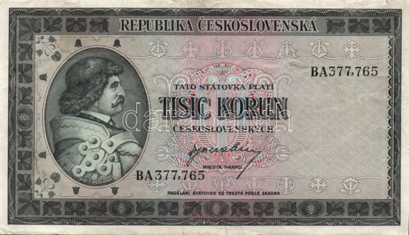 Csehszlovákia 1945. 1000K T:II https://www.darabanth.com/de/82-Fernauktion/82.0/Numismatik/~247/Csehszlovakia-1945-1000K-TII~II174069