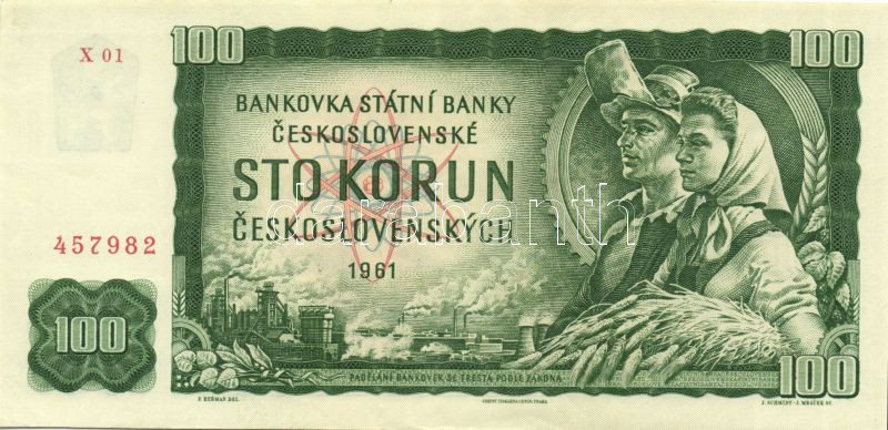 Csehszlovákia 1961. 100K "X01" variáns T:II https://www.darabanth.com/de/82-Fernauktion/82.0/Numismatik/~247/Csehszlovakia-1961-100K-X01-varians-TII~II173658