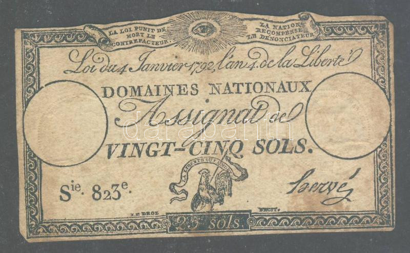 Franciaország 1792.(1.kiadás) 25Sol "Assignat" T:II https://www.darabanth.com/de/82-Fernauktion/82.0/Numismatik/~247/Franciaorszag-17921kiadas-25Sol-Assignat-TII~II173917