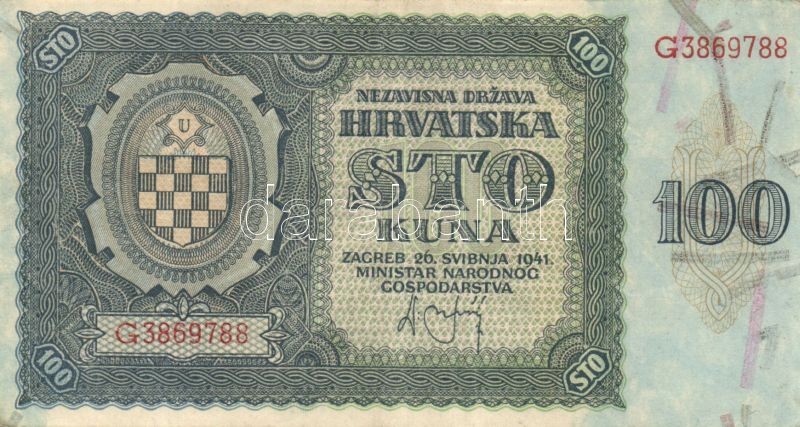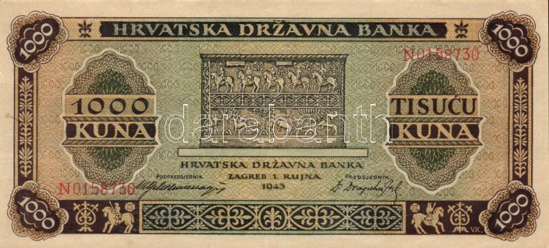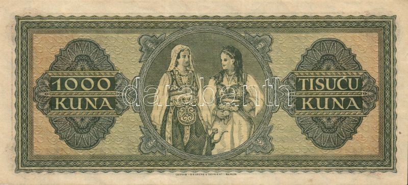 Horvátország 1941. 100K T:II + 1943. 1000K T:II https://www.darabanth.com/de/82-Fernauktion/82.0/Numismatik/~247/Horvatorszag-1941-100K-TII-plus-1943-1000K-TII~II173562