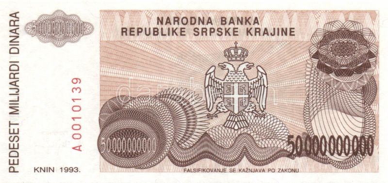 Horvátország/Krajina Szerb Köztársaság 1993. 5000D-50.000.000.000D 10k... https://www.darabanth.com/de/82-Fernauktion/82.0/Numismatik/~247/HorvatorszagKrajina-Szerb-Koztarsasag-1993-5000D-50000000000D-10klf-db-teljes-sor-TI~II173607