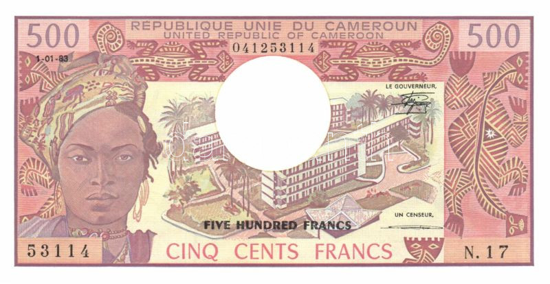 Kamerun 1983.01.1. 500Fr T:I https://www.darabanth.com/de/82-Fernauktion/82.0/Numismatik/~247/Kamerun-1983011-500Fr-TI~II173145