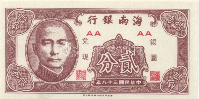 Kína/Hainan Bank 1949. 2c, 5c T:I + Bank of China/Foreign Exchange Cer... https://www.darabanth.com/de/82-Fernauktion/82.0/Numismatik/~247/KinaHainan-Bank-1949-2c-5c-TI-plus-Bank-of-ChinaForeign-Exchange-Certificates-1979-10F-50F-TI-~II173318