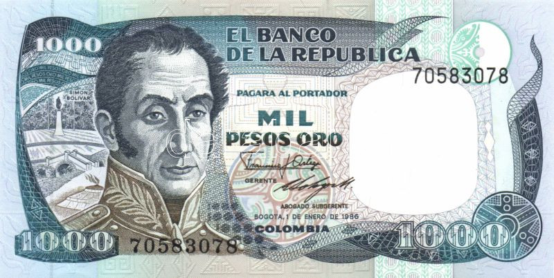 Kolumbia 1986.1.1. 1000P T:I https://www.darabanth.com/de/82-Fernauktion/82.0/Numismatik/~247/Kolumbia-198611-1000P-TI~II173324