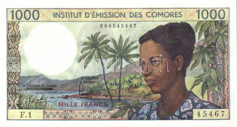 Komori szigetek 1976. 1000Fr T:I https://www.darabanth.com/de/82-Fernauktion/82.0/Numismatik/~247/Komori-szigetek-1976-1000Fr-TI~II173334