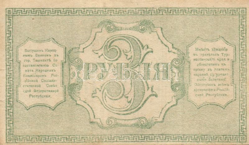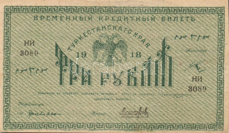 Orosz Polgárháború/ Orosz Közép Ázsia/Turkisztán 1918. 3R T:II https://www.darabanth.com/de/82-Fernauktion/82.0/Numismatik/~247/Orosz-Polgarhaboru-Orosz-Kozep-AzsiaTurkisztan-1918-3R-TII~II173741