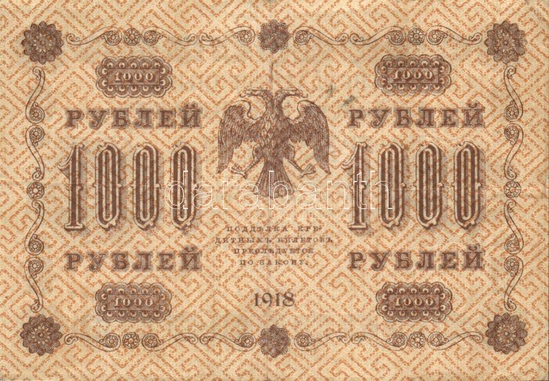 Oroszország /Szocialista Szövetségi Szovjet Köztársaság 1918. 1000R ví... https://www.darabanth.com/de/82-Fernauktion/82.0/Numismatik/~247/Oroszorszag-Szocialista-Szovetsegi-Szovjet-Koztarsasag-1918-1000R-vizszintes-vizjellel-TI~II173742
