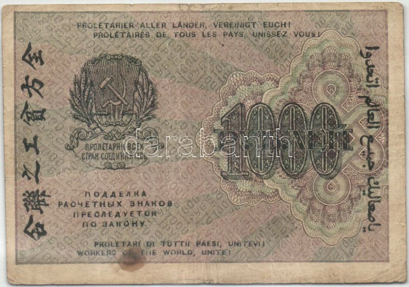 Oroszország/Szocialista Szövetségi Szovjet Köztársaság 1919. (1920.) 1... https://www.darabanth.com/de/82-Fernauktion/82.0/Numismatik/~247/OroszorszagSzocialista-Szovetsegi-Szovjet-Koztarsasag-1919-1920-1000R-vizszintes-1000-~II173745
