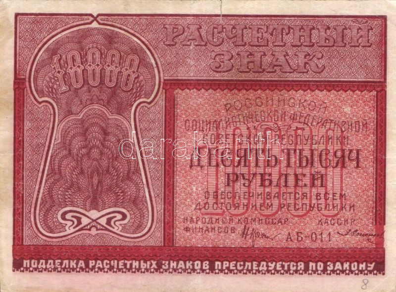 Oroszország/Szocialista Szövetségi Szovjet Köztársaság 1921. 10000R T:... https://www.darabanth.com/de/82-Fernauktion/82.0/Numismatik/~247/OroszorszagSzocialista-Szovetsegi-Szovjet-Koztarsasag-1921-10000R-TII~II173744