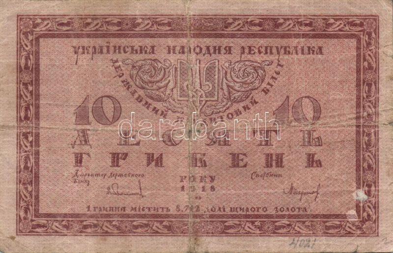 Ukrajna 1918. 10G "A" szériás T:III- https://www.darabanth.com/de/82-Fernauktion/82.0/Numismatik/~247/Ukrajna-1918-10G-A-szerias-TIII-~II173719