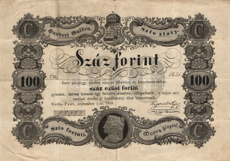 1848. 100Ft "Kossuth bankó" T:II- https://www.darabanth.com/de/82-Fernauktion/82.0/Numismatik/~248/1848-100Ft-Kossuth-banko-TII-~II173788