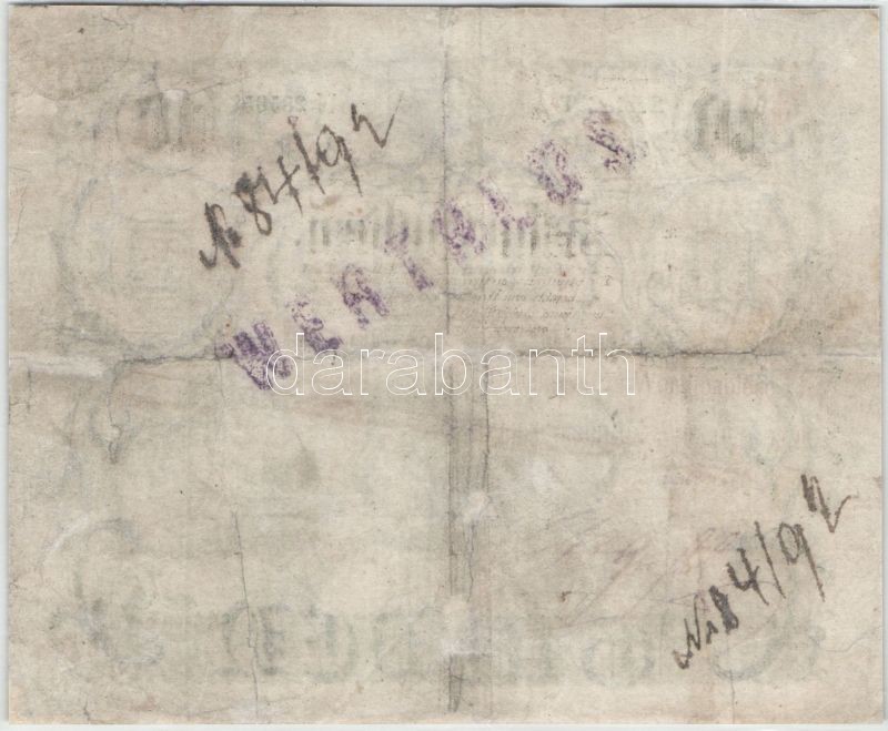 Beschreibung: 1863. 10G hátoldali "Wertlos" bélyegzéssel + "Nr. 84/92" (2x) kézírásos ráirattal T:restaurált