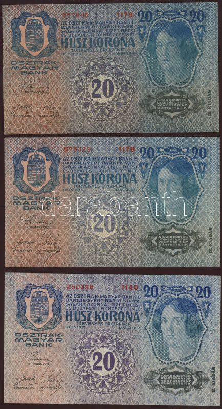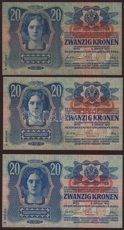 1913. 20K (5x) piros, vízszintes "Deutschösterreich" fny-sal T:I https://www.darabanth.com/de/82-Fernauktion/82.0/Numismatik/~248/1913-20K-5x-piros-vizszintes-Deutschosterreich-fny-sal-TI~II174151