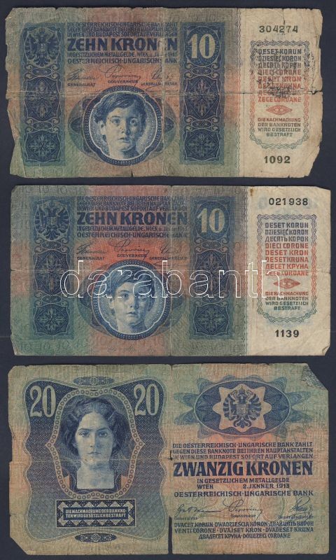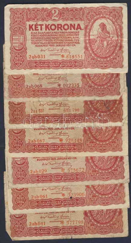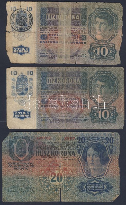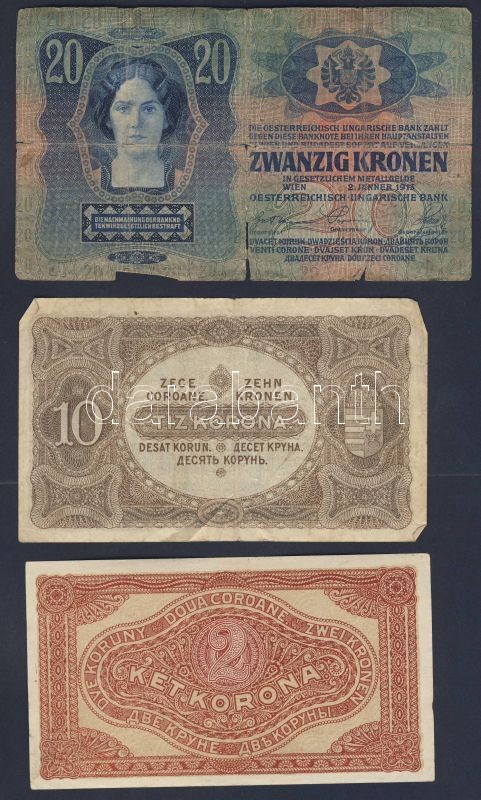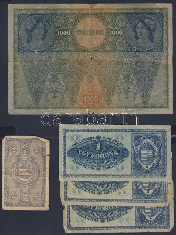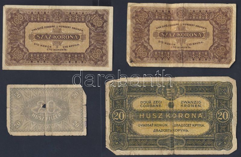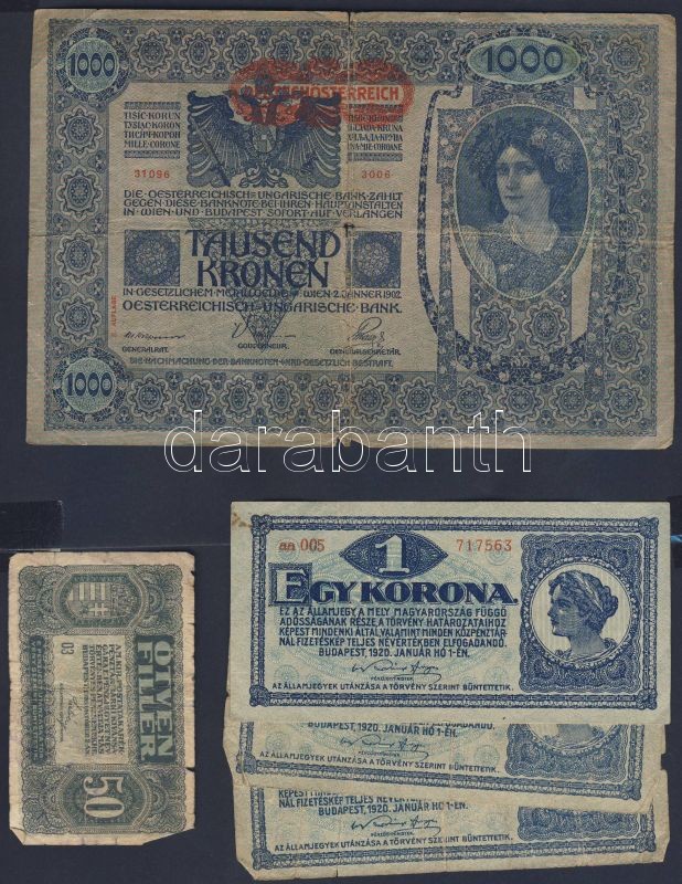 Kis korona tétel 1902-23. 20f (1x), 50f (1x), 1K (3x), 2K (8x), 10K (6x), 20K (4x), 100K (2x), 1000K (1x) Összesen 26db T:II,III,IV + 1944. "V.H." 1P + 2P T:III