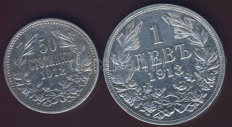 Beschreibung: Bulgária 1912. 50s Ag T:2/2+ + 1913. 1L Ag T:2/2-