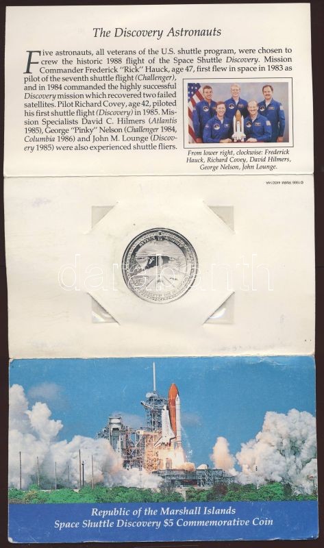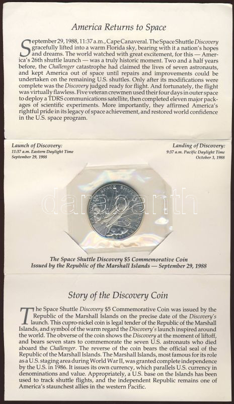 Marshall szigetek 1988. 5$ "Discovry űrsikló" díszcsomagolásban T:BU https://www.darabanth.com/de/82-Fernauktion/82.0/Numismatik/~252/Marshall-szigetek-1988-5USD-Discovry-ursiklo-diszcsomagolasban-TBU~II174235