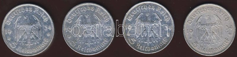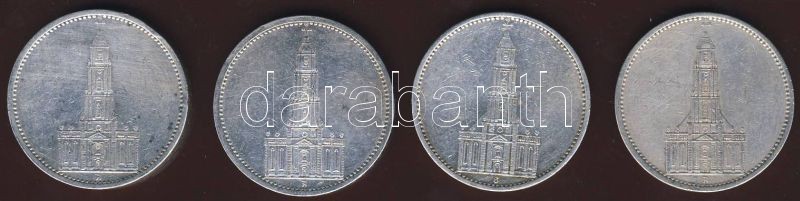 Német 3.Birodalom 1934. 5M Ag Garnisonskirche" (4x) T:2/3 https://www.darabanth.com/de/82-Fernauktion/82.0/Numismatik/~252/Nemet-3Birodalom-1934-5M-Ag-Garnisonskirche-4x-T23~II173874
