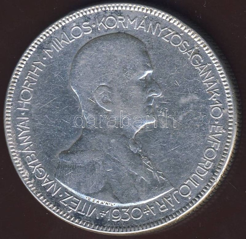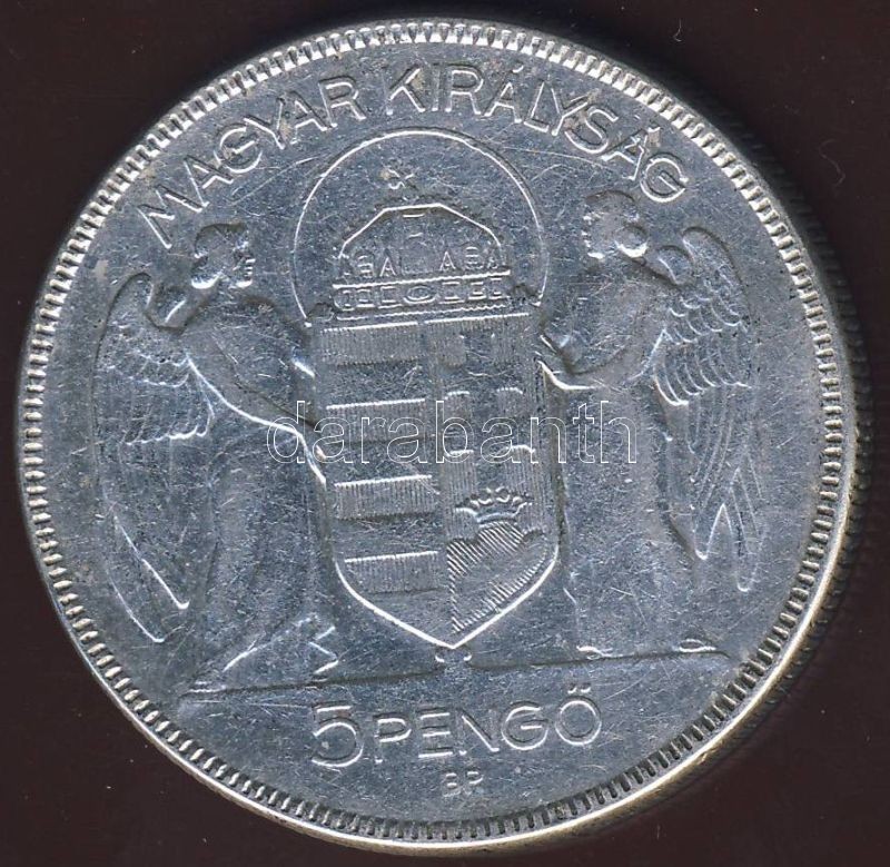 1930. 5P Ag "Horthy jobbra" T:3/3+ https://www.darabanth.com/de/82-Fernauktion/82.0/Numismatik/~254/1930-5P-Ag-Horthy-jobbra-T33plus~II174215