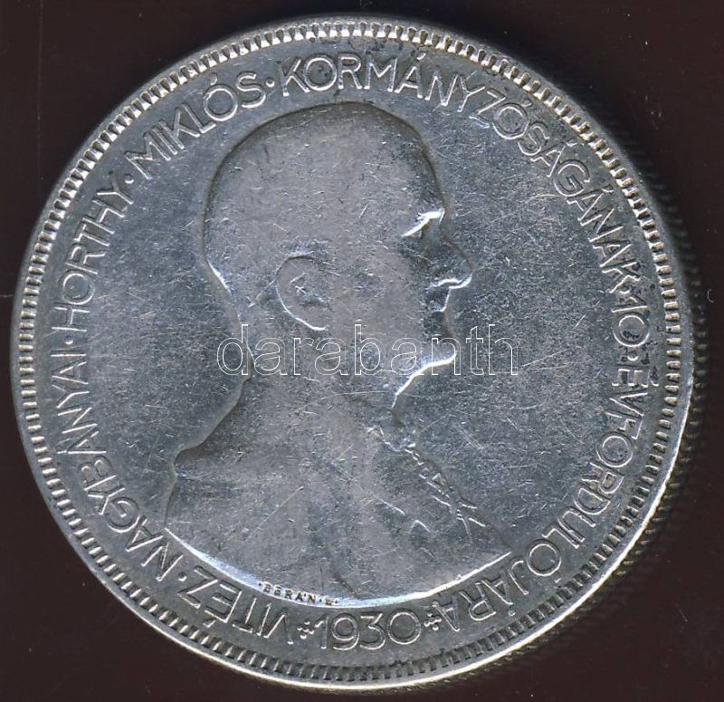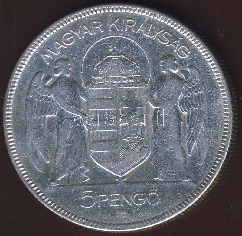 1930. 5P Ag "Horthy jobbra" T:3/3+ https://www.darabanth.com/de/82-Fernauktion/82.0/Numismatik/~254/1930-5P-Ag-Horthy-jobbra-T33plus~II174217