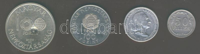 Beschreibung: 1936. 2P Ag "Liszt" T:2 k. + 1938. 50f T:2/3+ + 1980. 100Ft "Szovjet-magyar közös űrrepülés" T:BU + 1985. 100Ft "Labdarúgó VB" erős ütésnyommal T:BU